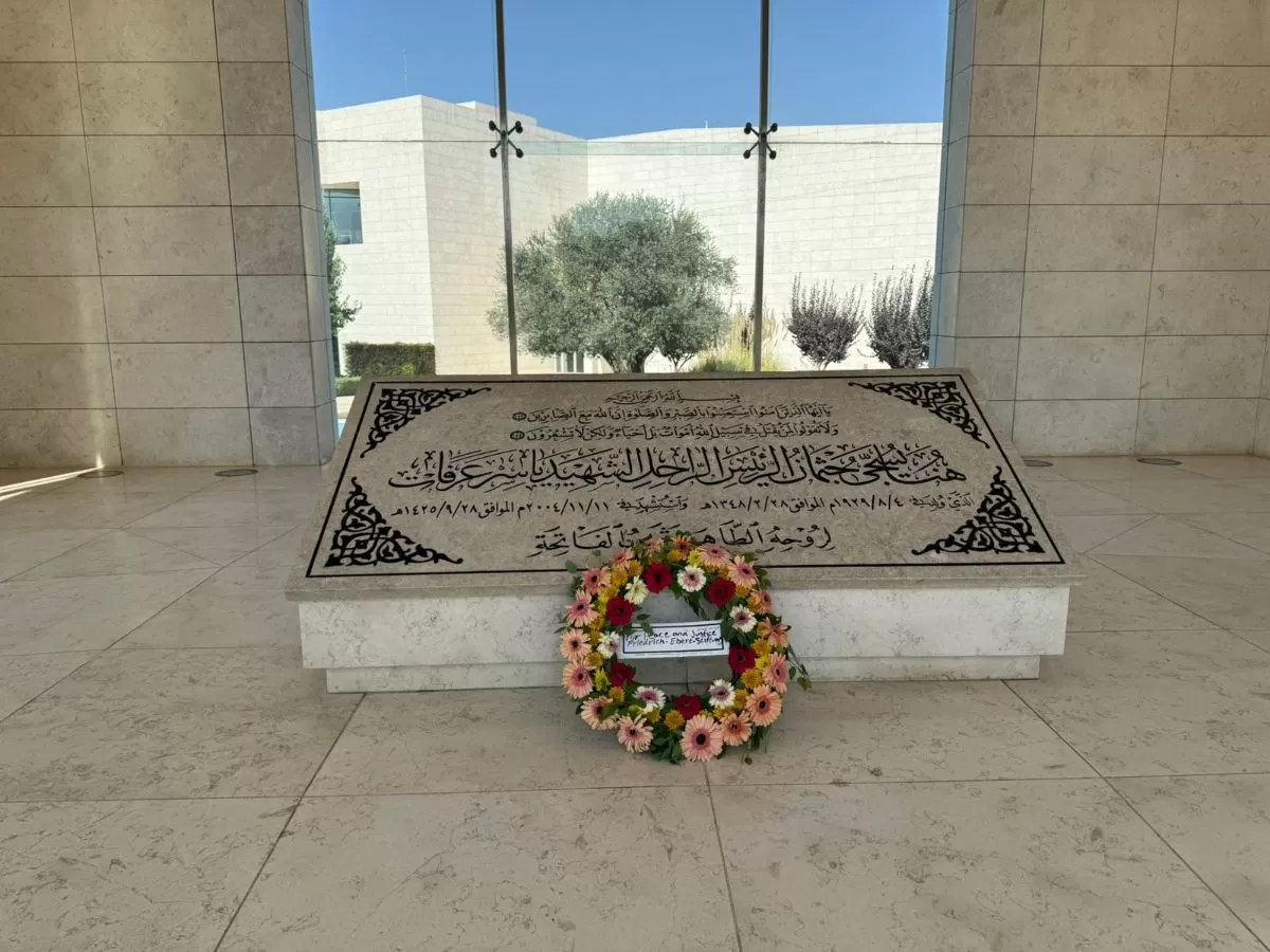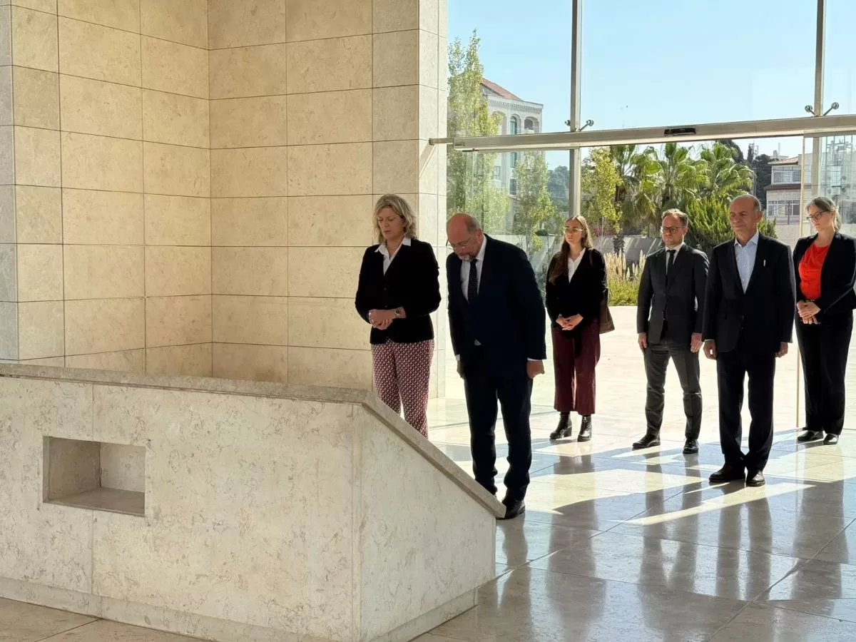 وضع مارتن شولتز رئيس مؤسسة فريدريش إيبرت الألمانية ورئيس البرلمان الأوروبي السابق، اليوم الأحد 2025/10/26، إكليلا من الزهور على ضريح الرئيس الشهيد ياسر عرفات في مدينة رام الله.